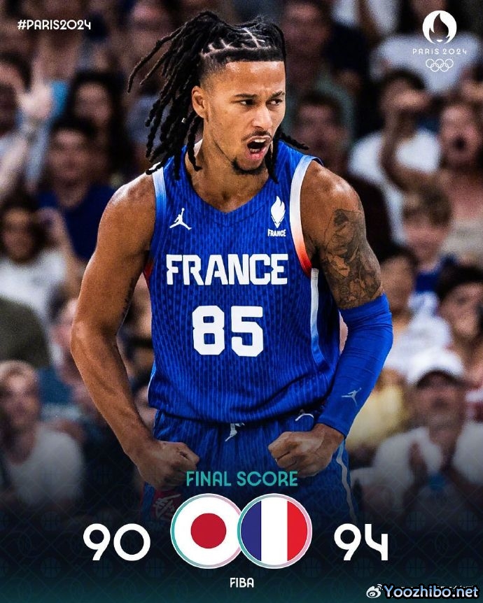 JRS低调看直播7月31日讯 奥运男篮小组赛B组,法国对阵日本。一开场,双方很快陷入缠斗,比分始终紧咬,法国不断冲击篮筐拿分,日本连中三分还以颜色,亚布塞莱连中三分,日本内外开花一波8-0一度反超比分,法国及时回暖完成9-2的小高潮,半场战罢法国49-44领先5分。下半场,日本率先发力打出8-2反超比分,此后双方展开拉锯战,比分交替领先,法国一波7-0占据主动,末节八村塁累计违体犯规被驱逐,河村勇辉3+1连得6分带队反超,双方争夺陷入白热化,戈贝尔误伤巴图姆导致后者嘴里出血,关键时刻富尼耶三分扳平比分,河村永辉4罚全中后斯特拉泽尔3+1再度抹平分差,河村永辉超远三分绝杀不中,双方进入加时。加时赛,文班亚马统治攻防两端,个人连得8分,日本连中三分但依旧无力回天。最终,法国加时94-90力克日本。