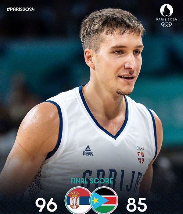 JRS低调看直播讯 北京时间8月4日讯 奥运男篮小组赛C组,塞尔维亚男篮对阵南苏丹男篮。前两场小组赛,两支球队皆是一胜一负。比赛开始,双方上来通过三分开局,塞尔维亚接连突破取分建立主动权,但南苏丹接连三分回应一波8-0,比分持续胶着,米西奇突破打板助塞尔维亚首节领先1分,次节博格丹和约维奇接连三分,塞尔维亚一波11-3进攻波领先到近10分,但南苏丹依然内外开花顽强咬住比分,约基奇接连内线强打半场助队领先3分。下半场,约基奇与博格丹一内一外继续扛起球队进攻,沙约克连续三分再次回应,随后约基奇接连内线取分带领球队一波7-0再次建立领先,末节加布里埃尔继续追分,但博格丹接连中远投还是能给出回应,随后塞尔维亚一波进攻波领先到17分,南苏丹连续追进3记三分但时间所剩无几,最终塞尔维亚力克南苏丹,以小组第二晋级8强;南苏丹由于净胜分劣势被淘汰。