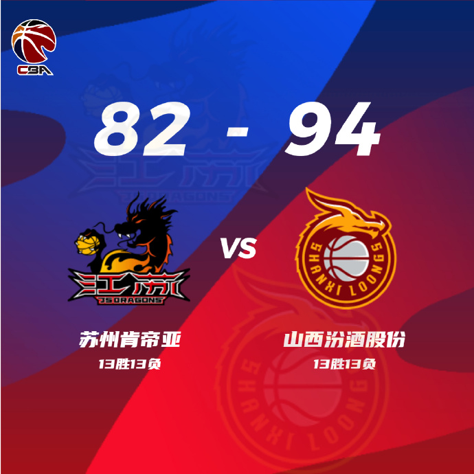 JRS低调看直播讯 1月15日讯 CBA常规赛,江苏对阵山西,江苏队目前以13胜12负位居联赛第12,山西则是12胜13负处于联赛第15。比赛开局,江苏队进攻状态不佳,首节仅得到11分,山西抓住机会建立两位数的领先优势,次节江苏手感回暖,多点开花一度将比分反超,此后双方陷入拉锯战,半场结束山西47-42领先。易边再战,山西稳扎稳打,分差重新回到10分上下,此后两队你来我往交替取分,江苏始终没能缩小差距,分差被维持至比赛结束,最终山西94-82力克江苏,送给对手三连败。