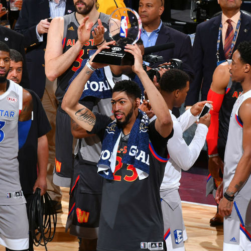 北京时间2017年2月20日,2017年新奥尔良全明星正赛在万众期待中上演。全场打完,西部队192-182战胜东部队。安东尼-戴维斯以52分+10个篮板的表现夺得MVP。詹姆斯以1,893,751票当选票王。阵容名单:西部首发五虎为浓眉哥、杜兰特、伦纳德、哈登、库里。