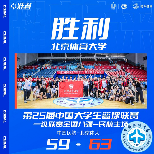 末节,面对如此困境中国民航并没有放弃,高宇坤内线强打命中还造成加罚,刘春雨也扔进三分,中国民航再次顽强扳平比分,杨腾飞篮下强打止血,谢智杰轻松突破再次稳住领先,虽然高宇坤接连内线取分,但北体大都能回应,尼加提三分命中后鲁骜抛投再中将分差拉开至9分,中国民航再无翻盘机会,最终北体大63-59再胜中国民航,昂首挺进全国四强。