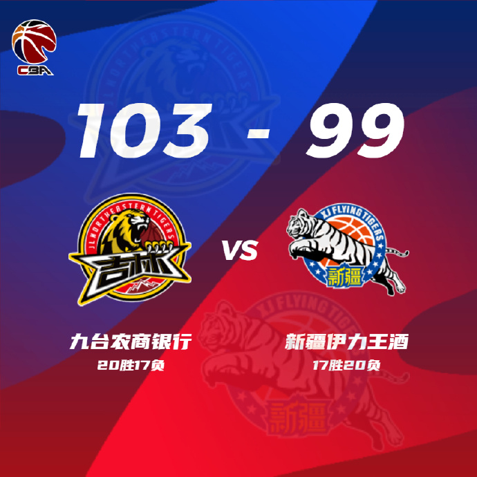 JRS低调看直播3月19日讯 CBA常规赛,吉林今日对阵新疆,前者两连败后排在联赛第十位,后者上场回归3分惜败北京位列积分榜第十八位,此役姜伟泽伤缺。比赛上来,两队的外线手感都很火热,连续命中多记远投,场上比分也是交替领先,次节新疆的命中率有所下滑,而吉林这边则是彻底攻开,连续的攻势过后将分差拉开到了两位数,半场结束时新疆落后15分;下半场回来吉林依旧占据着场上的主动权,分差一度突破了二十分,末节新疆打出一波11-0的小高潮缩小分差,但由于此前落后过多终究是没能获得逆转的机会,最终吉林力克新疆结束连败。