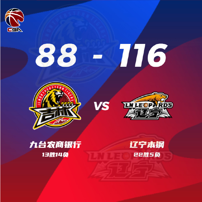 JRS低调看直播1月16日讯 CBA常规赛,本轮辽宁对阵吉林。辽宁7连胜高居联赛第三,吉林排在第十二。琼斯本场缺阵。比赛开始,双方开场阶段势均力敌,比分交替领先,相持中辽宁逐渐占据上风,郭艾伦得分助攻一肩挑带队打出18-4的攻击波取得两位数优势,半场战罢辽宁65-50领先。易边再战,吉林率先发力缩小分差,但辽宁及时回暖,多点开花一举将分差拉开到20分以上,吉林毫无起色,辽宁越战越勇将优势扩大到30分以上。最终,辽宁116-88大胜吉林,迎来8连胜。