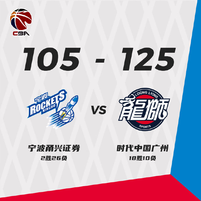 JRS低调看直播1月27日讯 CBA常规赛,宁波今日对阵广州,前者遭遇九连败后排在联赛倒数第二位,后者则是取得两连胜暂列积分榜第七位。比赛上来宁波的表现还算不错,能够与对手保持拉锯,但首个暂停之后广州开始发力,一波攻势将分差拉开到了两位数,次节双方的命中率都出现下降,但在半场结束时辽宁还是将领先优势扩大到了20分。易边再战,两队开始保持拉锯,双方你来我往但分差却并没有缩小的趋势,比赛早早就失去了悬念,最终广州大胜宁波,迎来三连胜的同时也送给后者十连败。