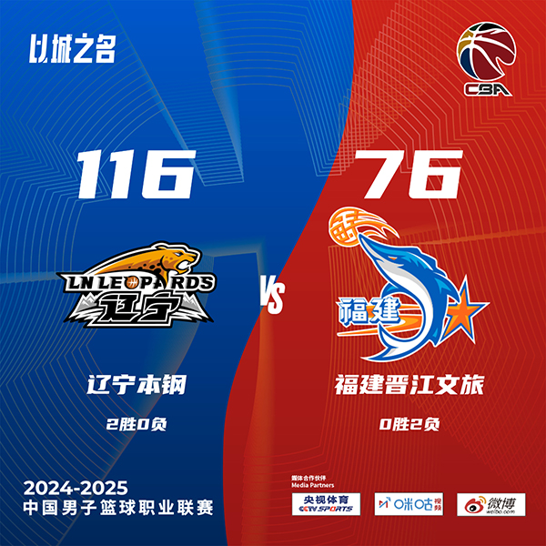 JRS低调看直播10月16日讯 CBA常规赛,辽宁主场迎战福建。比赛开始,双方短暂相持,随后辽宁持续发力打出12-0很快取得20分领先,次节福建仍无力招架,辽宁多点开花不断扩大优势,分差来到30分以上,半场战罢辽宁76-41领先福建。易边再战,辽宁命中率下降,但仍保持着大比分的领先,末节辽宁将优势扩大到40分以上,最终,辽宁116-76大胜福建。