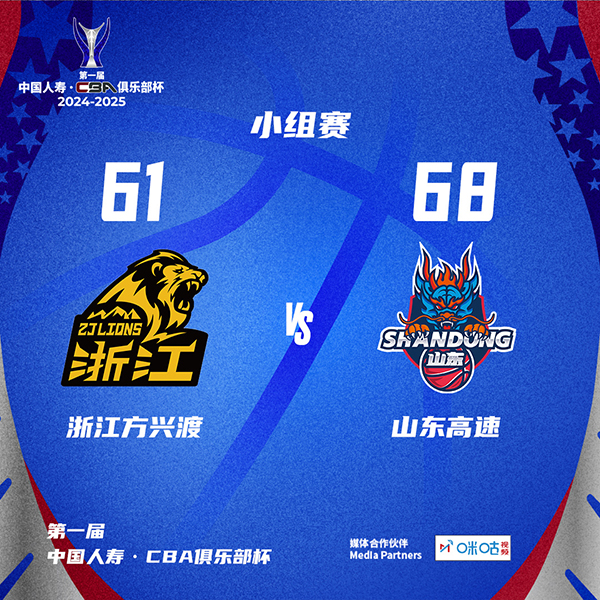 JRS低调看直播11月12日讯 CBA俱乐部杯烟台赛区,广厦对阵山东,本场比赛孙铭徽、胡金秋和高诗岩等双方多名主力不打。比赛开始,双方上来十分慢热,半节多比赛广厦得到5分,山东得到4分,随后广厦外援布朗接连取分,首节广厦领先4分,次节广厦进攻端突然陷入得分荒,打了半节多仅得3分,克里斯联手陈培东接连取分帮助山东半场反超1分。下半场,于德豪接连三分命中,但双方整体命中率还是一般,比分持续胶着,山东还是保持微弱领先,于德豪单节4记三分助队领先到7分,末节双方展开拉锯战,布朗和奈特继续帮助广厦追分,但刘毅成为奇兵能给出回应,山东始终保持两球以上领先,最终山东68-61力克广厦。