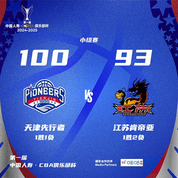 JRS低调看直播11月15日讯 CBA俱乐部杯定州赛区,天津对阵江苏。上半场,天津双外援率先发力帮助球队取得领先,江苏内外开花奋力反击,古德温得分助攻一肩挑带队反超,拉维特挺身而出连续拿分稳住局势,大卫-詹姆斯也延续火力,半场战罢天津55-49领先江苏。下半场,天津率先发力,多点开花将分差拉开到20分以上,江苏奋力反击回敬13-0的攻击波,末节双方陷入缠斗,江苏多次迫近比分,天津及时回暖锁定胜局。最终,天津100-93击败江苏。