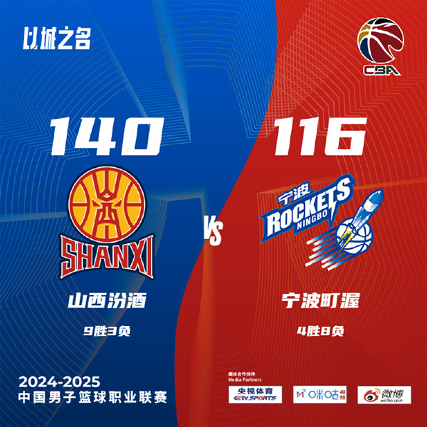 JRS低调看直播体育讯 2024年12月1日讯 CBA常规赛,山西今日迎战宁波,两队目前的情况都不算好,均是遭遇两连败,此役都想止住颓势。比赛上来,两队就打得十分胶着,分差始终没能打开,不过首节最后一分半钟时间里宁波没有再得分,山西趁势打出一波10-0的小高潮取得领先,次节原帅的外线手感火热连中三分,分差被拉开到了两位数,在首节轰下70分后次节双方又是合砍79分,半场结束时宁波落后15分;下半场回来,双方的命中率都出现下滑,但宁波的表现显然更差,分差也是直逼三十分,比赛到了末节早已失去悬念,最终山西大胜宁波,结束连败的同时也送给宁波三连败。