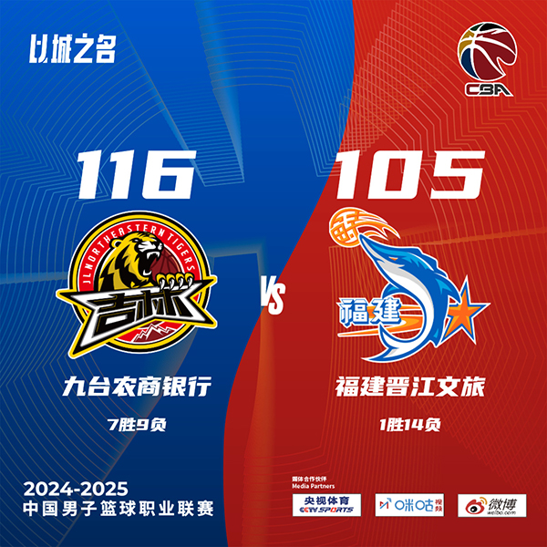 JRS低调看直播讯北京时间12月11日讯 CBA常规赛,吉林对阵福建,吉林上场比赛力克山东,福建则是6连败在联赛垫底。开场后吉林多点开花取得领先,高登带领福建紧追不舍,吉林依靠反击扩大优势。曾凌铉和高登轮番砍分掀起反扑,吉林外线手感火热连续用三分回应。第二节两队命中率都有下降,不过吉林在双外援的带领下将分差拉大,崔晋铭和贾昊状态不错连连拿分。易边再战,基兹林克和贾昊依旧手感火热连中三分,虽然福建开始还能回应远投,但吉林外线手感太过火热不停投进三分,崔晋铭更是三节结束前连中压哨三分,三节过后吉林领先到28分。最后一节虽然福建一路追分,但无奈此前分差太多,最终吉林116-105大胜福建取得2连胜,福建遭遇7连败。