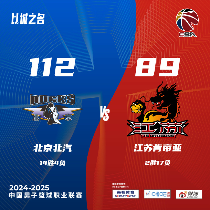JRS低调看直播12月18日讯 CBA常规赛继续进行,北京主场迎战江苏,周琦此役感冒严重缺席,北京上场大胜天津终结三连败,目前13胜4负位列联赛第6,江苏遭遇连败,2胜16负排在联赛倒数第二。首节开打后主场作战的北京早早发力,雷蒙、丘天和所罗门轮番取分,率队打出11-2开局,江苏三外援联手取分稳住局势,但曾凡博连投带罚强势回应,首节结束时北京领先6分,次节回来,江苏进攻彻底断电单节仅得到11分,北京火力不减连续轰出得分高潮,半场战罢,北京确立28分优势。易边再战后北京进攻火力放缓,刘泽希手感滚烫连中三分,但北京及时回暖牢牢占优,三节结束后北京依然领先29分,末节上来,两队陆续换上替补阵容,北京始终保持大比分优势,最终北京112-89大胜江苏送对手三连败。