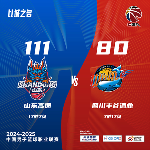 JRS低调看直播讯北京时间12月30日讯 CBA常规赛,山东对阵四川,山东最近发挥稳定取得3连胜,四川则是上场比赛1分险胜广州。开场后四川在亨特的带领下打得有声有色,球队外线手感也是不错,山东则是靠克里斯的强势发挥紧咬比分。第二节盖利和摩尔联手爆发,四川单节打出34-15的攻势建立起领先。易边再战,四川进攻依旧没有起色,山东继续扩大领先优势。最后一节虽然四川进攻找到感觉,但他们防守完全无法限制山东,最终山东111-80大胜四川取得4连胜。
