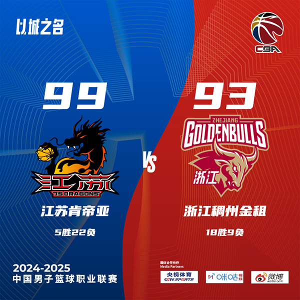 JRS低调看直播讯北京时间1月5日讯 CBA常规赛,江苏今日迎战浙江,前者上场比赛战胜广州,后者则是遭遇两连败,此役吴前、程帅澎和余嘉豪缺战。比赛上来,浙江就展示出了火热的进攻状态,一波15-4的开局迅速打停江苏,调整过后江苏并没有改变场上局势,他们单节只拿到18分,次节浙江命中率出现下滑,江苏这边刘泽希单节独得11分带队追分,半场结束时分差还剩8分;下半场回来,江苏继续追分,并利用一波9-0的小高潮成功实现反超,之后两队开始保持拉锯,关键时刻江苏直接打出一波9-0杀死比赛,最终江苏力克浙江迎来赛季首次连胜。