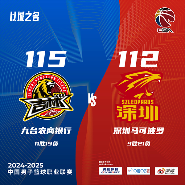 JRS低调看直播讯 北京时间1月13日讯 CBA常规赛,吉林主场迎战深圳。吉林近期4连败,以10胜19负排联赛第13,深圳9胜20负紧随其后。上半场,深圳率先发力,三分6中6迅速取得20分以上领先,次节风云突变,吉林轰出18-2一度反超比分,贺希宁连续拿分稳住局势,半场战罢深圳67-62领先吉林。下半场,深圳率先发力扩大领先,琼斯连投带罚帮助球队顽强咬住,末节王浩然、卢鹏羽、鲁吐布拉先后犯满离场,吉林轰出14-0确立优势,贺希宁连投带罚帮助球队扳平比分,关键时刻姜伟泽3+1完成绝杀。最终,吉林主场25分逆转深圳,结束了自己的4连败。