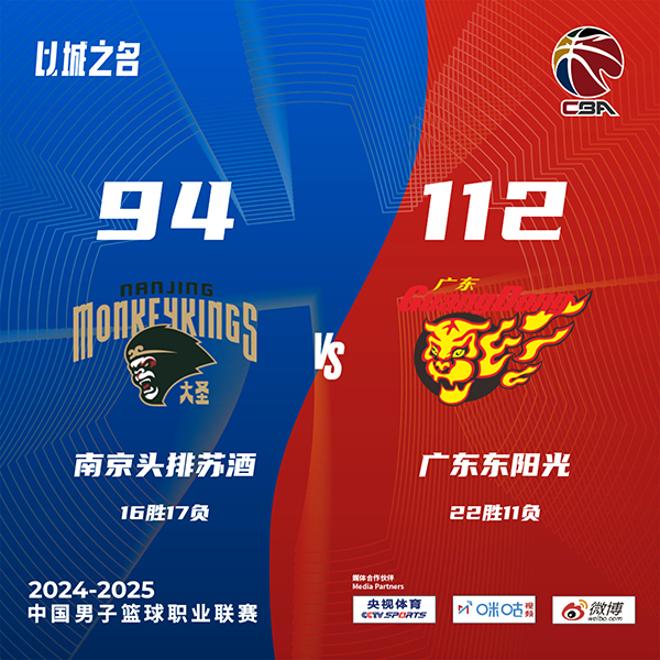 JRS低调看直播讯 北京时间1月20日讯 CBA第二阶段赛事继续开打,广东和同曦迎来一场交手。广东近期状态出色豪取8连胜,同曦也在近期取得3胜1负的不错战绩。首节开局广东上来就确立起领先占据上方,同曦前半节虽然落后但还能咬住比分,奈何后半节5分钟里仅得6分导致分差被拉开,广东这边连续冲击篮下送出15-6的攻势确立起两位数领先;次节同曦加强进攻一度追至5分,奈何又是后程乏力导致局面重新变得被动,他们最后2分钟里颗粒无收,广东则顺势送上10-0的攻势重新拉开15分的领先进入下半场。休息归来双方持续拉锯,广东手握两位数领先一直占据上方,同曦则相当被动,林葳虽然在第三节命中超远压哨三分,但这没能唤醒同曦扭转局面,相反广东末节上来就是8-0继续扩大优势,这之后广东一直掌控着两位数的优势保持到最后。最终,广东轻取同曦迎来9连胜。
