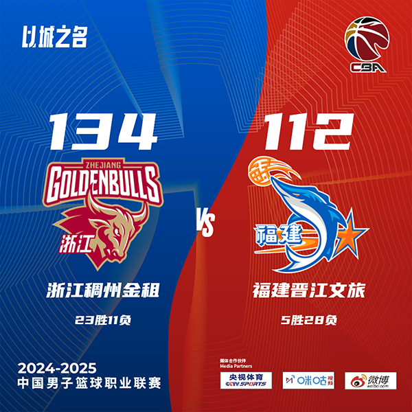 JRS低调看直播讯 北京时间1月22日讯 NBA常规赛,浙江主场迎战福建。浙江22胜11负高居联赛第4,福建5胜27负垫底。一开场,浙江率先发力,内外开花很快取得两位数领先,路易斯-金和约瑟夫-杨联手拿分带队追赶,福建一度反超比分,达米安-琼斯和余嘉豪制霸内线,浙江重新占据场上主动,半场打完以66-62领先福建。下半场,浙江火力全开轰出25-6一举将分差拉开到20分,末节浙江越战越勇不断扩大优势,最终,浙江134-112大胜福建,主场过关。