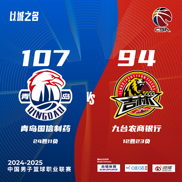 JRS低调看直播讯 北京时间1月25日讯 CBA常规赛,青岛今日迎战吉林,前者上场比赛战胜四川,后者则是输给新疆。比赛上来,两队的进攻表现都不太好,半节时间得分均未上双,不过青岛随后在两分钟的时间里轰出一波11-0的小高潮拉开分差,首节末段到次节初,吉林连拿七分又追了回来,但随后他们就陷入到得分荒,青岛再打11-0建立起两位数的领先优势,半场结束时吉林落后13分;下半场回来,两队展开对攻,分差并没有发生太大变化,青岛始终握有十分以上的领先,末节吉林也没有再获得任何机会,最终青岛轻取吉林迎来连胜。