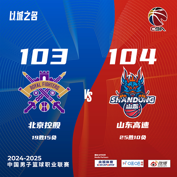 JRS低调看直播讯 北京时间1月25日讯 CBA常规赛,北控对阵山东,北控最近状态不错取得4连胜,山东也是拿到2连胜。开场后山东打得更有活力,通过反击和二次进攻取得领先,北控靠着里勒和邹雨宸的内线优势追上比分,山东靠着第一节结束前连续的罚球领先1分结束第一节。第二节上来萨林杰和特莱斯开启得分模式帮助北控迅速将领先优势扩大到两位数,虽然山东逐渐找回节奏,但北控进攻打得顺风顺水单节轰下40分。下半场回来,邹雨宸依旧状态火热,他在内线频频暴扣,不过高诗岩手感火热不断砍分,山东紧追不舍,三节结束前库马杰接连篮下得手帮助山东进一步缩小分差。末节回来两队对抗激烈犯规不断,刘晓宇被吹违体犯规,山东抹平分差,随后两队陷入僵持,场上比分交替上升,关键时刻高诗岩两记三分完成反超,北控最后没能把握住绝杀机会,最终山东104-103逆转北控取得3连胜,北控4连胜被终结。