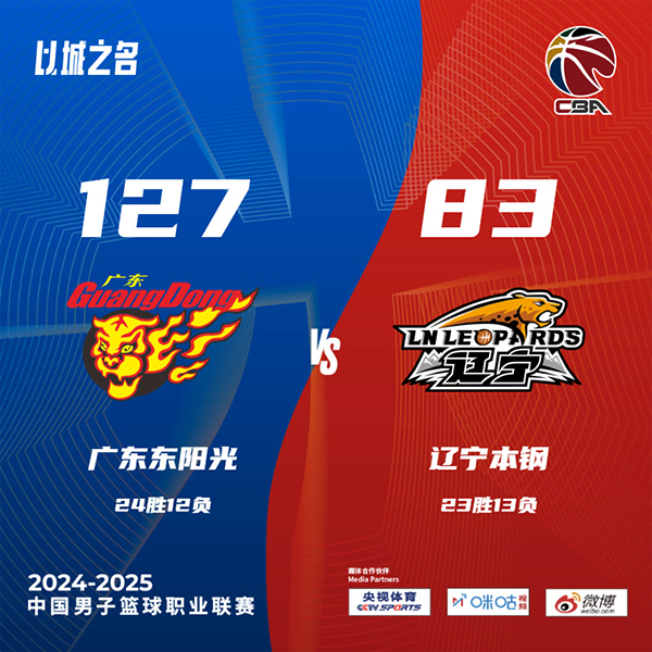 JRS低调看直播讯北京时间3月5日讯 CBA常规赛,广东对阵辽宁,广东和辽宁目前分别排在联赛第九和第八,上场比赛两队都是取得胜利,本场比赛胡明轩复出。开场后广东率先打出攻势以21-6开局,徐杰表现积极,伯克更是状态火热内突外投不断砍分,赵继伟和威尔斯连续打出反击止血并且一路追分,贝兹利和吉伦沃特强攻内线帮广东再度将分差拉大到两位数。第二节辽宁先是连续通过罚球拿分,但杜润旺状态神勇,不仅空位三分机会把握住,还多次跟进攻筐得手,广东趁机将领先优势扩大到18分,随后辽宁努力追分,但无奈手感并不理想,赵继伟压哨大号两分命中。易边再战,广东外线手感依旧火热,上来一阵三分雨下继续扩大优势,辽宁进攻端打得艰难,老将韩德君在内线强攻勉强追分。最后一节广东依旧攻势连连,场上分差继续被拉大,比赛早早进入垃圾时间,最终广东127-83大胜辽宁。