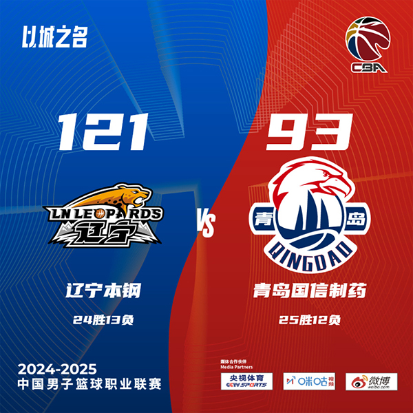 JRS低调看直播讯北京时间3月7日讯 CBA常规赛,辽宁主场迎战青岛。辽宁23胜13负仅排在第9,青岛25胜11负高居第4。比赛开始,双方开场便陷入缠斗,比分咬得很紧,张镇麟连中两球后赵继伟三分穿针,辽宁完成7-0的攻击波取得领先,次节辽宁持续发力一度获得17分优势,青岛不断冲击内线频频得手迅速缩小分差,半场战罢辽宁63-55领先青岛。易边再战,辽宁稳扎稳打保持场上优势,双方围绕10分左右分差展开激烈争夺,末节辽宁越战越勇一举将优势扩大到20分以上,青岛大势已去无力回天。最终,辽宁121-93大胜青岛,主场过关。