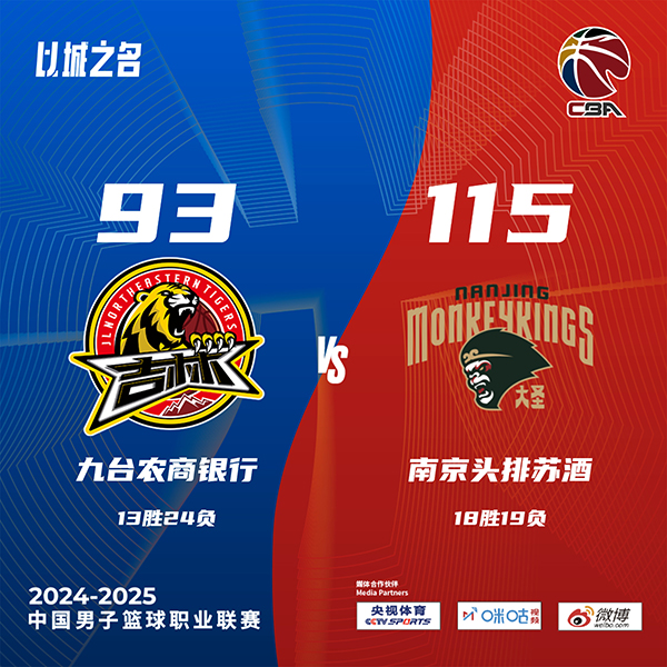 JRS低调看直播讯北京时间3月7日讯 CBA常规赛,吉林对阵同曦,上场比赛吉林击败四川结束2连败,同曦则是最近遭遇2连败,本场比赛林葳缺阵。开场后两队你来我往多次打成平手,第一节尾声毕格柏和栾利程联手帮助吉林取得微弱优势。第二节哈里斯上来接连砍分帮助同曦反超比分,郭昊文也是频频拿分,不过吉林及时调整做出回应,两队陷入僵持,第二节尾声依旧是哈里斯和郭昊文联手拿分帮助同曦建立优势,琼斯及时站出来帮吉林将分差咬在个位数。易边再战,同曦上来先外线开火,吉林也及时回应,两队围绕十分拉锯。第三节后半段同曦掀起反扑将分差拉大到20分以上。最后一节琼斯虽然努力带领吉林追分,但同曦总能及时回应,分差始终在两位数,最终同曦115-93轻取吉林。