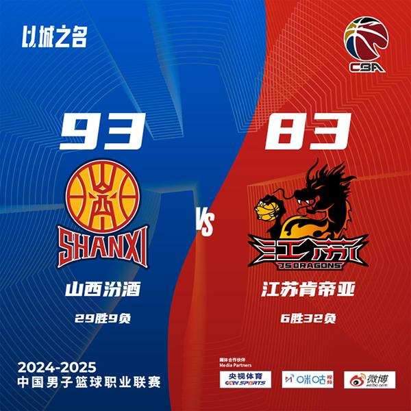 JRS低调看直播讯北京时间3月10日讯 CBA常规赛,山西今日迎战江苏,前者近来取得两连胜,后者则是遭遇三连败,比赛上来,山西两个外援各打一个都没有斩获,江苏先拿五分取得领先,整个第一节的绝大部分时间里江苏都占据场上优势,而山西只拿到18分,次节山西的表现依旧没有好转,迪亚洛更是多次扣篮砸飞,江苏逐渐将分差拉开到两位数,半场结束时山西落后12分;下半场回来,山西终于找回状态,他们连续完成抢断由布兰登-古德温得分,单节净胜16分完成反超,末节江苏虽然紧咬比分却始终无法再反超获得领先机会,最终山西力克江苏,迎来三连胜的同时也送给后者四连败。