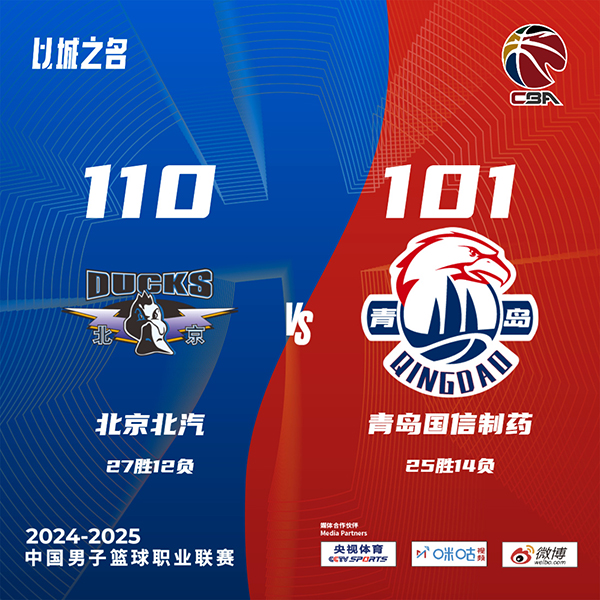 JRS低调看直播讯北京时间3月12日讯 CBA常规赛,北京对阵青岛。北京6连胜,26胜12负高居联赛第3,青岛25胜13负排在联赛第8,本场杨瀚森缺阵。比赛开始,双方开场便陷入缠斗,比分咬得很紧,曾凡博攻防两端发力带队打出10-2的攻击波取得领先,次节双方围绕10分左右分差展开拉锯战,周琦和曾凡博联手拿分,但青岛连中三分抹平分差,半场战罢双方战成55平。易边再战,两端依旧打得难解难分,鲍威尔突然发力连得13分带队取得领先,末节北京持续发力夺回优势,青岛苦苦追赶无果。最终,北京110-101力克青岛,取得七连胜。