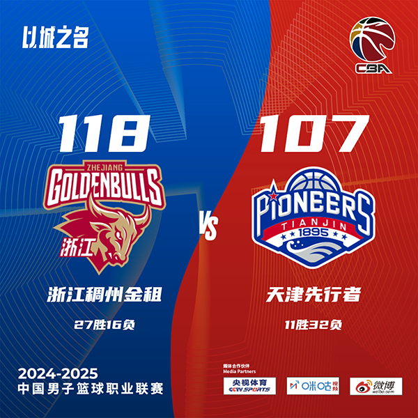 JRS低调看直播讯 北京时间3月22日讯 CBA常规赛,浙江主场迎战天津。浙江26胜16负排在联赛第10,天津11胜31负排在第16。上半场,浙江率先发力,内外开花取得两位数领先,天津不断冲击内线努力追赶,浙江连中三分迅速回应,次节双方大打对攻,约克火力全开,连中三分带队保持优势,半场战罢浙江66-53领先天津。下半场,天津发起反击缩小分差,约克延续火力带队保持优势,末节两队继续对攻,浙江火力更猛不断扩大优势,杜伯超和王奕博发生口角双双吃T,杜伯超犯满离场。最终,浙江118-107轻取天津,主场过关。