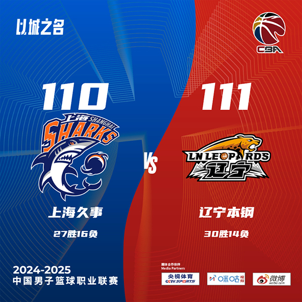 JRS低调看直播讯北京时间3月23日,CBA常规赛上海久事主场迎战辽宁本钢,半场上海54-57辽宁,比赛还剩最后2分钟辽宁领先9分,随后上海反扑追至1分分差,最后3.3秒,辽宁张镇麟为避免上海犯规战术直接选择超远三分出界,留给上海0.5秒最后一攻后场发球洛夫顿空接出手弹框而出,最终辽宁111-110险胜上海。