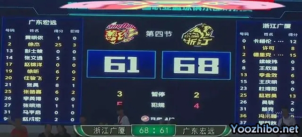 JRS低调看直播讯 北京时间 9月16日讯 CBA热身赛,广东队61-68不敌广厦队。此役双方前三节你来我往陷入僵持,广东队稳扎稳打始终占优,并带着10分优势进入末节,但末节比赛形势风云突变,广厦单节27-10逆转对手。四节比分分别是(广东在前):19-13、19-17、13-11和27-10。