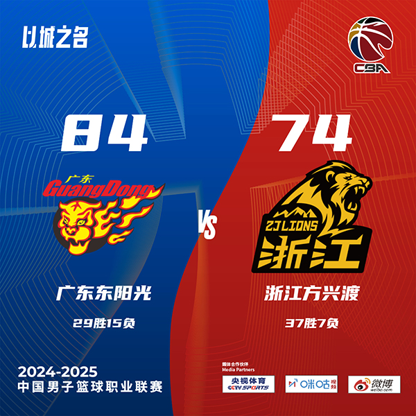 来源:JRS低调看直播03-25 08:25 JRS低调看直播讯:北京时间3月24日消息,2024-25赛季CBA常规赛继续第44轮角逐。坐镇主场的广东男篮经过四节较量以84-74战胜浙江广厦男篮,取得2连胜;广厦队6连胜终结。