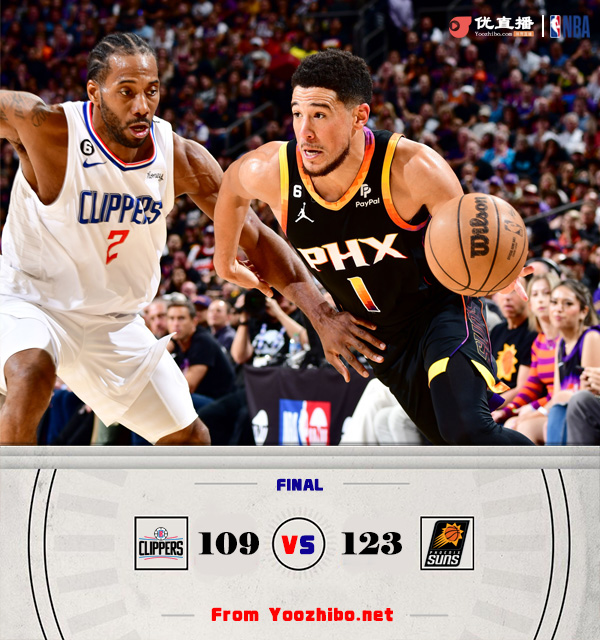 JRS低调看直播 4月19日讯 NBA季后赛首轮第二场对决,太阳主场继续迎战快船,双方首场季后赛,威少最后时刻一封盖加一球权帮助快船以下克上、先下一城,本场比赛佩恩继续缺阵。比赛上来,快船就外线接连3记三分打出一波11-2进攻高潮,好在太阳依靠火热的中投手感给出回应,小卡连续防成杜兰特,进攻端有攻有传帮助快船建立主动权,次节快船替补席多点开花拉开双位数领先,艾顿接连中投止血,随后威少里突外投连续取分,杜兰特中投几乎一个不丢强势回应带队追平比分。下半场,太阳上来就一波6-0建立领先,并开始包夹小卡,布克几乎弹无虚发单节轰下18分帮助太阳保持住主动权,末节快船上来进攻端还是受阻,太阳抓住机会将分差拉开至双位数,随后保罗接连中距离牢牢掌握住10分左右领先,最终太阳123-109逆转快船,总比分扳成1-1。