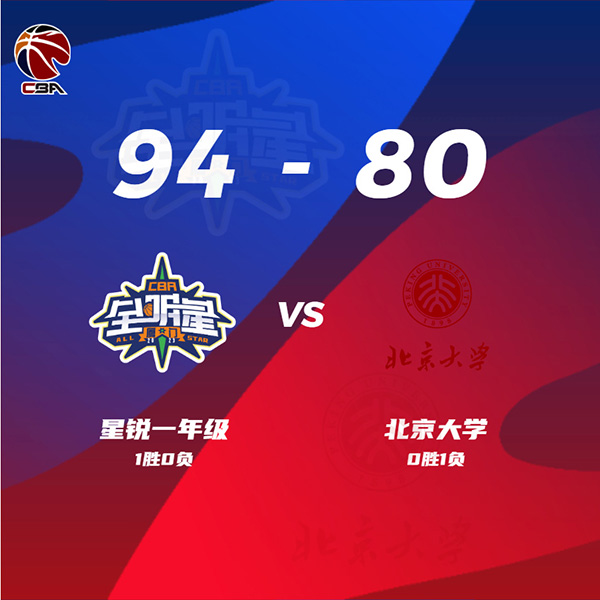 JRS低调看直播3月25日讯 CBA全明星周末正式拉开大幕,首先进行星锐赛,由星锐一年级对阵北京大学,星锐一年级由本赛季表现不错的新星组成,北京大学队则是由北京大学的球员组成。比赛一上来,星锐一年级焦泊乔接连内线暴扣打出11-2不错开局,而李苑鑫则是独自撑起北京大学的进攻,林葳主要串联球队,曾凌铉接连外线发炮,李弘权也是里突外投连续取分,星锐一年级还是很快建立起双位数领先。下半场,星锐一年级让更多球员登场亮相,李苑鑫带领北京大学一度追到个位数分差,而星锐一年级得分点众多很快稳住局势,末节星锐一年级连续失误,北京大学接连打成反击一度追到差4分,但星锐一年级迅速回应一波10-0稳住局势,北京大学再无翻盘机会,最终星锐一年级94-80战胜北京大学。