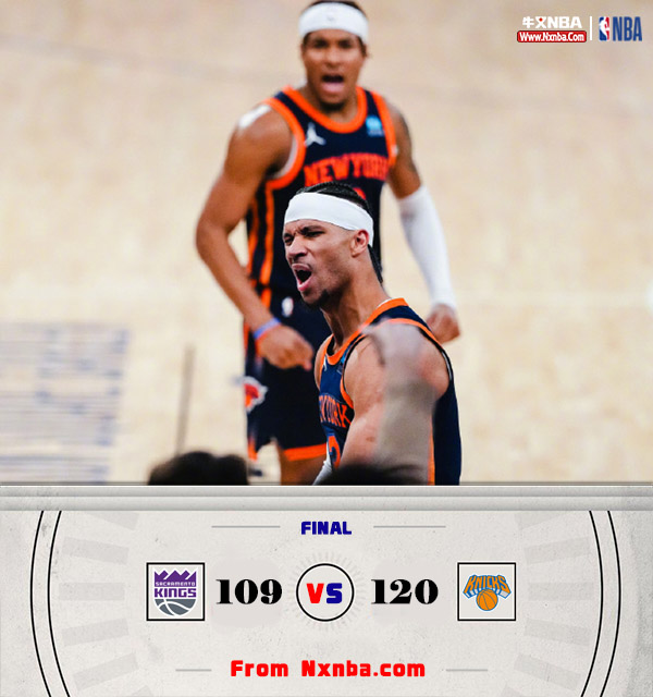 JRS低调看直播4月5日讯 NBA常规赛,尼克斯今日迎战国王,前者近来情况不佳遭遇三连败,后者则是取得两连胜,此役蒙克和阿努诺比缺战。比赛上来,两队短暂拉锯后国王一波小高潮将分差拉开到了两位数,整个第一节尼克斯只拿到20分,次节国王迅速将分差扩大到二十分以上,但之后他们的命中率急剧下滑,尼克斯在布伦森的带领下打出一波16-2的攻势,半场结束时国王领先8分;下半场回来,尼克斯继续发起反扑,迪文岑佐节末外线连续出手成功帮助球队实现反超,末节双方一直保持拉锯,但随后哈特和布伦森联手打出一波13-0的攻势拉开分差,最终尼克斯21分逆转国王结束三连败。