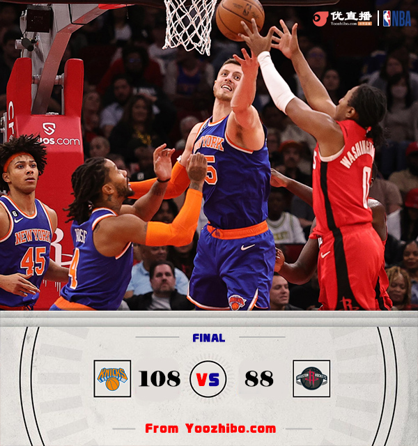 JRS低调看直播1月1日讯 火箭今日坐镇主场迎战尼克斯,火箭最近8场比赛输掉7场,仅仅在客场击败公牛“稳坐”西部副班长位置;尼克斯在经历一波8连胜后近期遭遇5连败。首节之争两队上演进攻端对决,火箭以4记三分打开局面彰显良好手感,而这一节他们命中7记三分火力全开拿到8分的领先优势;不过次节火箭状态大幅下滑,首节拿下35分的他们这一节仅得14分,这其中还包括最后3分40秒里一分未得,而尼克斯抓住机会末段送出11-0的攻势反超4分进入下半场。休息归来尼克斯在和火箭的三分对决中再次胜出,节中他们连续飚进4记三分送出16-6的攻势一举拉开两位数领先,末节火箭短暂追至个位数但很快就被尼克斯一波12-4的攻势打回原形,分差重新拉大至15分左右让比赛失去悬念。最终,尼克斯客场击败火箭结束5连败。