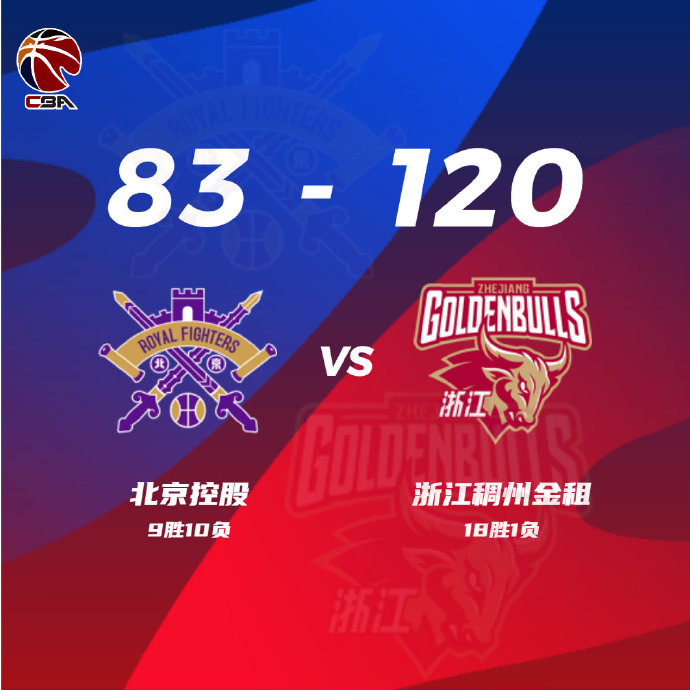 JRS低调看直播12月28日讯 CBA常规赛,北控今日对阵浙江,前者两连败后排名联赛第十二位,后者则是两连胜继续继续领跑所有球队,此役张帆和高登缺战。比赛上来,双方就陷入到了拉锯战,场上比分交替领先,首节后半段浙江开始取得领先,次节北控表现更加糟糕,分差被浙江拉开到了两位数,半场结束时北控落后15分;下半场浙江已经完全掌握了场上的主动权,分差也是突破了四十分,比赛彻底失去了悬念,最终浙江大胜北控,迎来三连胜的同时也送给后者三连败。