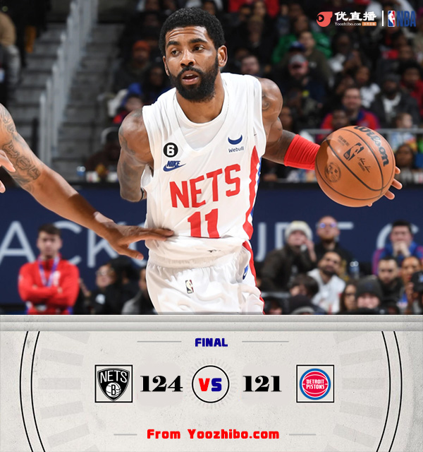 JRS低调看直播12月19日讯 NBA常规赛,篮网客场挑战活塞。篮网5连胜升至东部第四,活塞东部倒数第二。比赛开始,活塞利用主场优势率先发力,内外开花很快取得两位数领先。篮网逐渐进入状态不断冲击内线拿分咬住分差。双方大打对攻,活塞多点开花保持优势,半场战罢活塞71-54领先。易边再战,活塞命中率下降,杜兰特开启死神模式单节狂轰26分帮助篮网单节净胜19分一举扭转颓势。末节两队展开激烈争夺, 篮网连中三分占据主动,末段2分多钟的时间双方颗粒无收,博扬飙中三分后欧文3罚2中,篮网顶住了对手的反扑惊险过关。