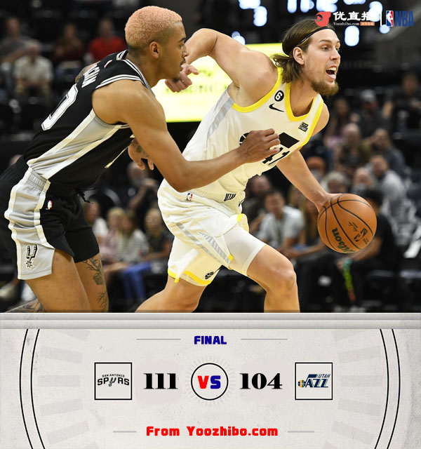 JRS低调看直播讯:10月12日讯 NBA季前赛继续进行,爵士主场迎战马刺,双方休赛期都迎来大规模的人员变动开始重建,而马刺此前3场季前赛未尝胜绩,爵士则是取得1胜1负的战绩。开局爵士通过外线不错的手感率先建立领先,但瓦塞尔联手凯尔登突破加中投接连打出小高潮直接反超并建立双位数领先,次节爵士进攻端还是没有调整好,接连失误让马刺抓住机会继续拉大分差,瓦塞尔和凯尔登继续保持火热进攻状态。第三节,马刺进攻端继续施压直接将分差拉开至20分以上,爵士没有什么好办法,随后双方围绕20分左右分差展开拉锯战,末节爵士替补们接连冲击内线打出13-2的进攻波一举追到个位数分差,但马刺马上依靠外线三分稳住领先优势,最终马刺力克爵士,终止3连败。