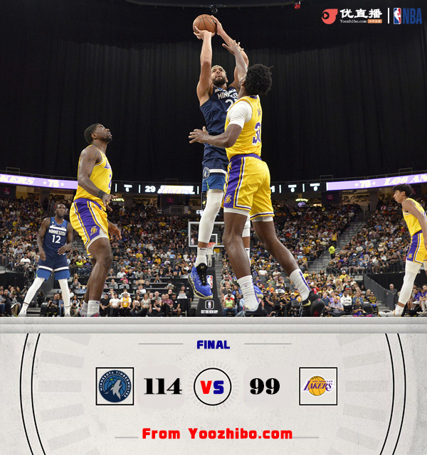 JRS低调看直播10月7日讯 湖人和森林狼今日迎来一场季前赛较量,上一场缺阵的戈贝尔今日首发出战,湖人方面则核心全部轮休。湖人虽然全替补但开局状态相当不错,开局8-0的攻势帮助他们一直保持着接近10分的领先,不过森林狼末段找回状态开始反击,他们首节末和次节初打出跨节14-2的攻势反超比分并取得9分领先进入下半场。下半场森林狼依旧稳压湖人一头,单节轰下36分帮助他们在第三节就拿到24分领先,巨大分差也让末节失去悬念,湖人靠着最后一波11-0的攻势稍稍挽回颜面。最终,森林狼轻取湖人取得季前赛2连胜,而湖人则遭遇3连败。