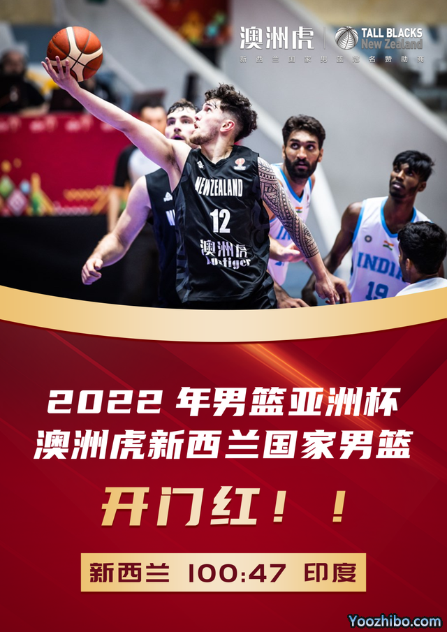 JRS低调看直播讯 北京时间7月13日,2022男篮亚洲杯第二比赛日打响,在刚刚结束的比赛中,身披澳洲虎战袍的新西兰男篮以100-47狂胜印度男篮,取得开门红。