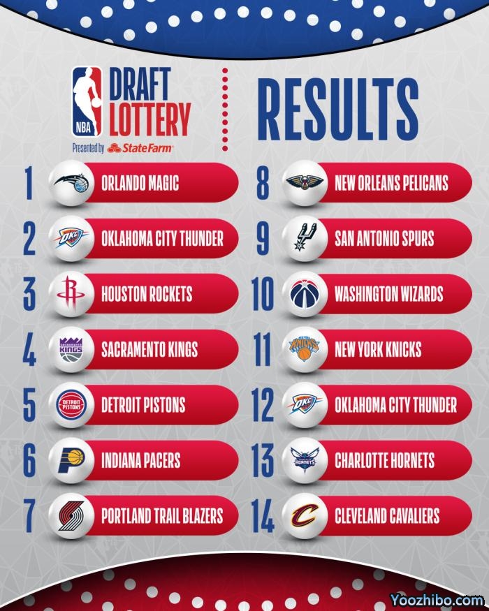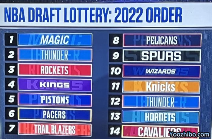 JRS低调看直播讯 北京时间5月18日讯 2022年NBA选秀抽签仪式今日进行,根据常规赛战绩,火箭、魔术和活塞、雷霆(本身12.5%+快船签1.5%)均有14%的概率抽中状元签,步行者(10.5%)也有超过10%的概率。其中魔术抽中状元签,雷霆抽中榜眼签,火箭抽中探花签,湖人的8号签最终归属鹈鹕。最终,魔术喜获状元签!雷霆获得榜眼、火箭获得探花、国王第四。