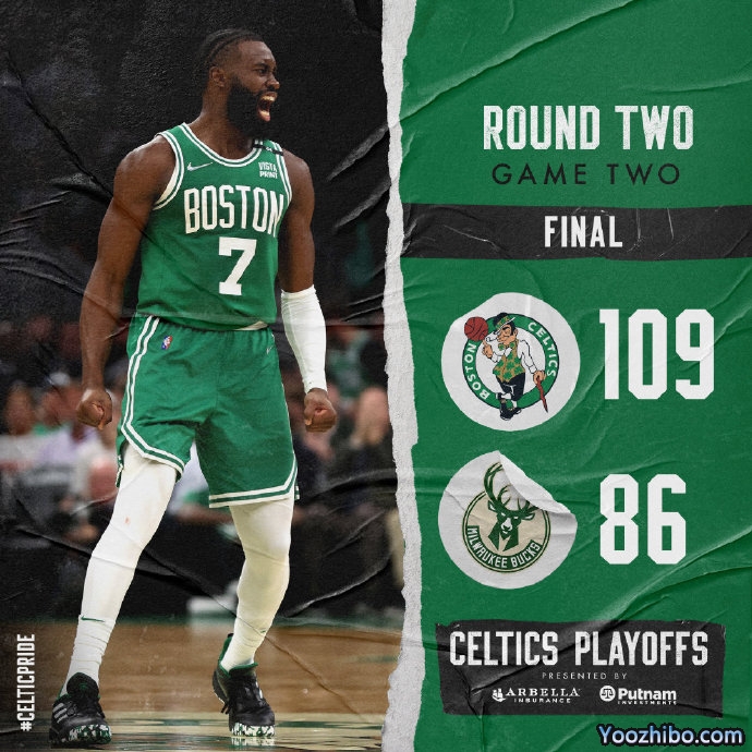 JRS低调看直播5月4日讯 NBA季后赛东部半决赛第二场,凯尔特人今日继续迎战雄鹿,两队首场比赛雄鹿轻松拿下胜利将主场优势夺回,本场斯玛特因伤缺战。比赛上来凯尔特人就一扫颓势7-0完美开局,分差也是逐渐拉开到了两位数,而雄鹿这边进攻状态一直低迷,前两节就砍下25分的布朗帮助凯尔特人在半场结束时领先25分。易边再战,字母哥终于进入状态单节拿到18分,不过由于此前分差过大,雄鹿始终没能将分差缩小回个位数,最终凯尔特人大胜雄鹿,将大比分追至1-1平。