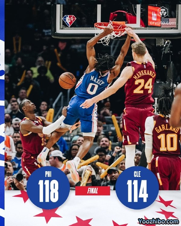 76人(42-26):恩比德35分17篮板5助攻,哈登21分2篮板11助攻2抢断,哈里斯19分6篮板3助攻,马克西25分2篮板2助攻,塞布尔5分4篮板,格林6分2抢断,尼昂3分2篮板,小乔丹4分5篮板