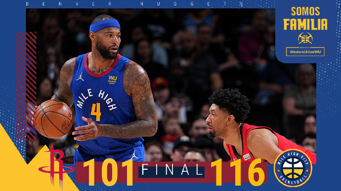 JRS低调看直播3月5日讯 NBA常规赛继续进行,掘金主场迎战火箭,掘金目前36胜26负排在西部第6位,火箭则是又经历一波11连败继续西部垫底,本场比赛约基奇因生病缺战。开局考辛斯状态不错里突外投帮助掘金迅速建立领先,但火箭一群年轻球员靠冲劲也能咬住比分,萨古最后上来连续打成帮助火箭领先1分,次节掘金替补纷纷站出来,海兰德和贾马考-格林相继成为奇兵帮助掘金重新掌握比赛主动权,但最后2分多钟掘金一分未得,被火箭抓住机会打出10-0攻击波重新追到5分分差。第三节,考辛斯继续自己的火热状态里突外投连续取分帮助掘金牢牢掌握住十几分领先,面对火箭的追分球掘金总能给出回应,末节掘金始终保持着双位数领先,火箭后半节外线手感也一般,分差始终没有被缩小,最终掘金击退火箭,送对手12连败。