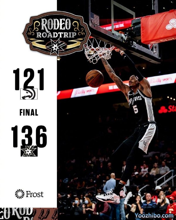 JRS低调看直播2月12日讯 NBA常规赛继续进行,老鹰坐镇主场迎战马刺队,此役马刺新援理查德森等人缺阵。首节开战,马刺进攻端状态火热,全队本节外线手感出色,三分十投八中,也使球队很快建立了领先优势,节末老鹰连续两记三分稍稍迫近比分,马刺43-29领先结束第一节。次节上来,马刺外线机会变少,两队连续在内线做文章,老鹰逐渐缩小分差,一度只落后6分,但突然又陷入得分荒,马刺顺势打出8-0重新稳住局面,节末,马刺再接连命中三分,珀尔特尔超远压哨三分也中,马刺73-56保持领先结束上半场。易边再战,马刺前半节延续上半场进攻状态,逐渐拉大分差,一度领先至26分,但随后进攻突然断电,老鹰很快打出一波11-0迫近分差,节末穆雷连得四分稳住局面,三节结束马刺103-87领先。末节上来,两队交替取分,老鹰无法防住马刺的进攻迫近分差,随着约翰逊再连得五分,老鹰换上替补,马刺随后也换人,比赛进入垃圾时间,最终全场结束,马刺136-121客场大胜老鹰。