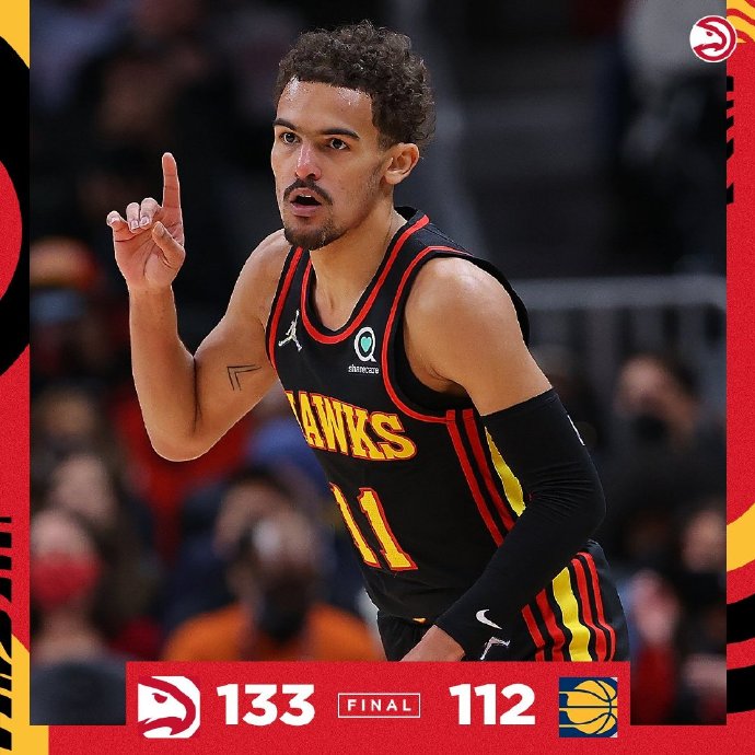 老鹰(26-28):杨34分11助攻、亨特8分、柯林斯20分、卡皇6分12篮板、许尔特12分、博格达13分、奥孔武14分