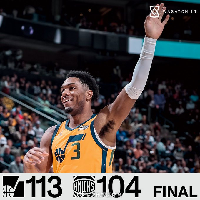 JRS低调看直播2月8日讯 NBA常规赛继续进行,爵士主场迎战尼克斯,爵士目前一波2连胜排在西部第4位,而尼克斯则状态不佳,2连败暂列东部第12位,本场戈贝尔继续缺战。开局尼克斯进入比赛状态较快,由于戈贝尔缺阵爵士内线被疯狂针对,尼克斯也打出攻击波建立优势,但末段爵士抓住尼克斯得分荒成功回应小高潮并追平比分,次节米切尔终于找到手感,里突外投为爵士打出小高潮并反超比分,随后双方互相攻击内线并造杀伤,比分也是交替领先,节末康利的不错发挥还是帮助爵士领先2分。第三节爵士率先领先到双位数,但随后外线连续打铁突然陷入长达6分多钟的得分荒,尼克斯抓住机会多点开花打出24-2超级进攻波一举建立领先,节末爵士依靠三分紧急止血,末节双方手感都有下滑,爵士挑战成功后接连扔进三分开始掌握主动权,尼克斯多次追分反超机会把握不住,米切尔发力杀内线帮助爵士重新领先至双位数,最终爵士险胜尼克斯,拿到3连胜的同时送给对手3连败。