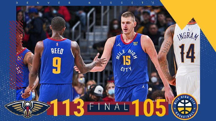 JRS低调看直播2月5日讯 NBA常规赛掘金对阵鹈鹕,掘金近来遭遇2连败,戈登因为腿筋不适缺阵。开场后约基奇上来连得7分展现不错状态,但鹈鹕多点开花紧咬比分,两队连续在外线对飙三分,首节掘金领先2分。第二节掘金外线依旧手感火热不断命中三分,英格拉姆站出来带领球队紧咬比分,上半场掘金52-51领先鹈鹕。下半场回来场上比分仍旧胶着,约基奇再次展现进攻欲望接连拿分,不过瓦兰和英格拉姆两人轮番砍分帮助鹈鹕仍旧紧咬比分,三节过后两队打成平手。第四节两队仍旧打得一片火热,第四节后半段鹈鹕通过提速抓反击取得领先,其中琼斯表现优异,虽然掘金通过三分续命,但又是琼斯最后连续制造杀伤帮助鹈鹕守住胜果,他末节6中6独得18分,最终鹈鹕113-105送掘金3连败。
