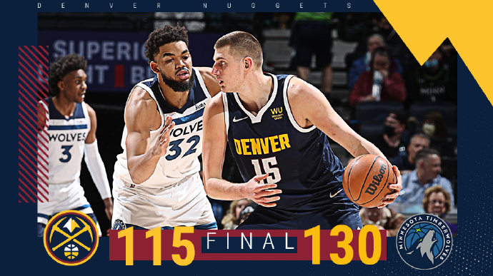 JRS低调看直播2月2日讯 NBA常规赛,森林狼今日迎战掘金,前者上场比赛大胜爵士暂列西部第七位,后者则是取得五连胜升至西部第五位。比赛上来两队进入状态都比较慢,但随后便开始展开对攻,掘金虽然利用一波8-0的小高潮取得领先,但森林狼及时调整追上比分,次节轮换阶段,里德和普林斯两人彻底打开,森林狼也在他们的带领下一度将分差拉开到二十分以上,半场结束时掘金落后18分。易边再战,掘金依旧显得办法不多,分差在末节已经达到了三十分,比赛彻底失去了悬念,最终森林狼大胜掘金,终结了后者的五连胜。