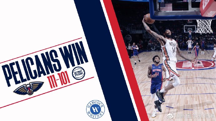 JRS低调看直播2月2日讯 NBA常规赛继续进行,活塞主场迎战鹈鹕,此前鹈鹕已经四连败,本场比赛格兰特复出,哈特等人缺阵。比赛一上来格兰特就中投命中宣告自己的回归,此后两队陷入拉锯战,鹈鹕这边英格拉姆跳投手感极佳,连续命中,活塞则众人发力,双方交替领先,活塞33-31领先进入次节。第二节上来,英格拉姆休息,鹈鹕进攻效率下降,活塞连续进攻禁区一度将分差拉开到十分,但随后英格拉姆回到场上帮助鹈鹕回应一波13-4,将比分追平,节末格兰特连中3记三分帮助活塞重新建立优势,65-57领先。易边再战,鹈鹕陷入得分荒,活塞延续势头,一度将分差拉开到15分,随后阿尔瓦拉多连续取分带领鹈鹕迫近比分,节末克拉克三分将分差缩小到1分,海耶斯长途奔袭命中准压哨抛投,活塞87-84进入末节。第四节回来,鹈鹕稳扎稳打很快追平并取得反超,瓦兰和英格拉姆连续取分,帮助鹈鹕建立领先优势,最后两分钟英格拉姆连得6分,分差来到两位数,随后英格拉姆被吹技犯遭遇驱逐,但活塞无力再追上,最终鹈鹕客场111-101逆转击败活塞,终结连败。