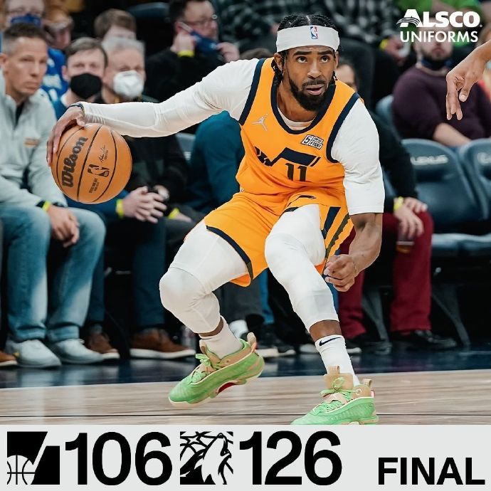 JRS低调看直播1月31日讯 NBA常规赛继续进行,森林狼主场迎战爵士,此前森林狼已经两连败,爵士则是正在遭遇四连败,本场比赛戈贝尔,米切尔,拉塞尔等继续缺阵。比赛开场森林狼陷入四分钟的得分荒,爵士打出6-0领先,但随后森林狼找到进攻手感,很快追平并建立优势,爵士则进攻效率偏低,首节结束森林狼26-20暂时领先。第二节上来,两队交替取分,爱德华兹和克拉克森形成对飙,随后英格尔斯突破受伤离场,爵士连中三记三分取得反超,博格达再连续取分帮助爵士扩大领先,但森林狼这边马上在外线作出回应,在节末打出一波11-0,半场结束仍然以52-48保持领先。易边再战,爵士连续失误,森林狼稳扎稳打逐渐拉开比分,爵士紧咬,但唐斯突然爆发,个人单节连取18分,分差瞬间被拉大,爵士这边进攻禁区止血,麦克丹尼尔斯连续打进维持分差,三节结束森林狼92-75领先。末节森林狼很快将分差拉大到20分,爵士连中三分紧咬,但森林狼的进攻势头正盛,唐斯也完成三双,爵士无力再反超,最终森林狼126-106大胜爵士,送给对手五连败。